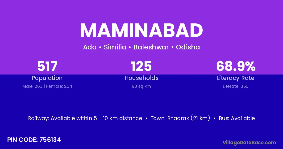 Bhadrak (21 km) is the nearest town to Maminabad village for major economic activities and is located approximately 21 km away.