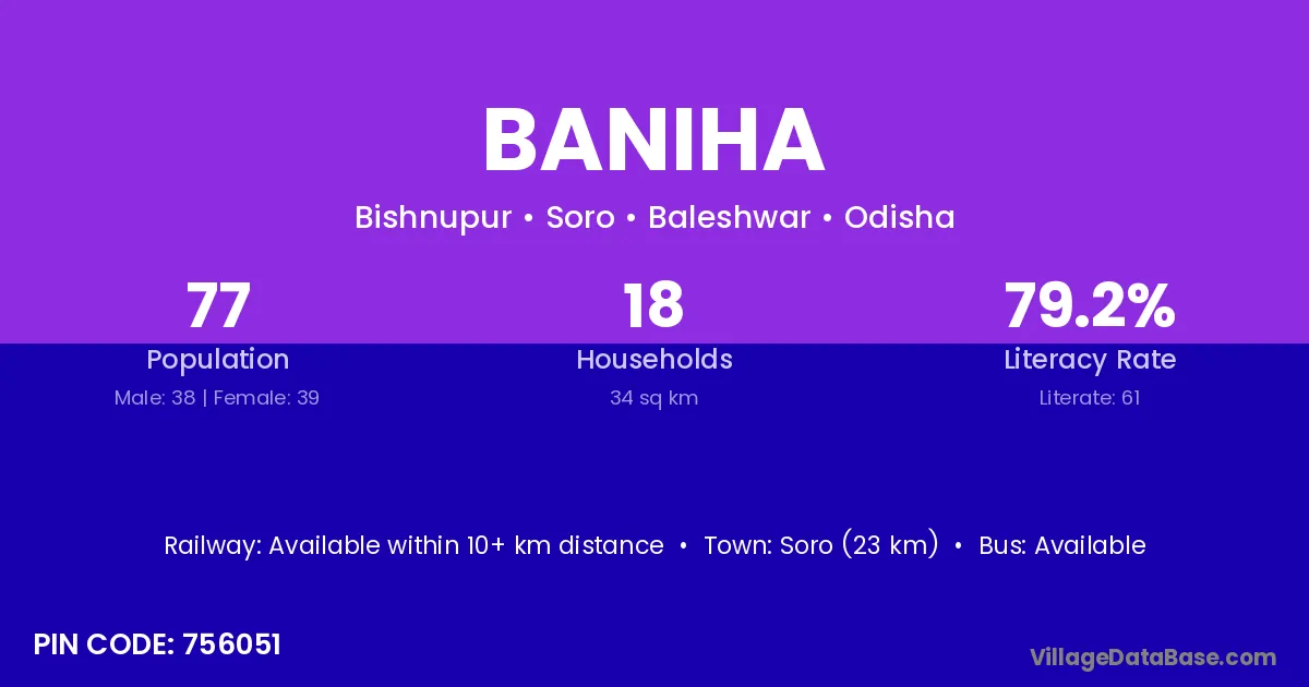 Baniha village is located in the Soro Tehsil of the Baleshwar district in Odisha .