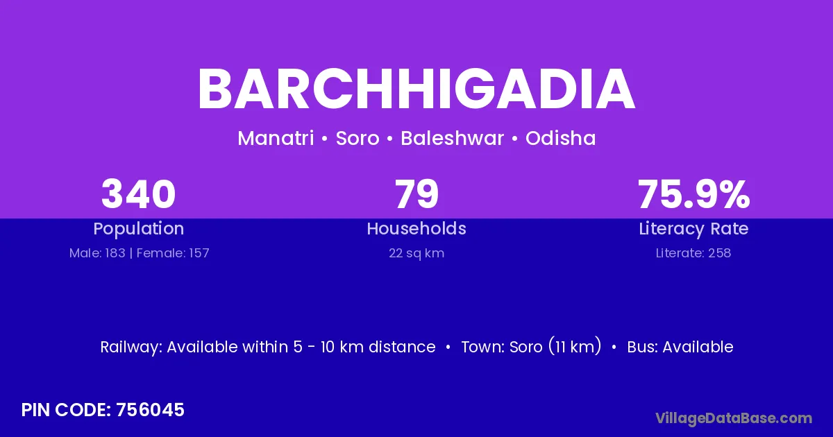 Soro (11 km) is the nearest town to Barchhigadia village for major economic activities and is located approximately 11 km away.