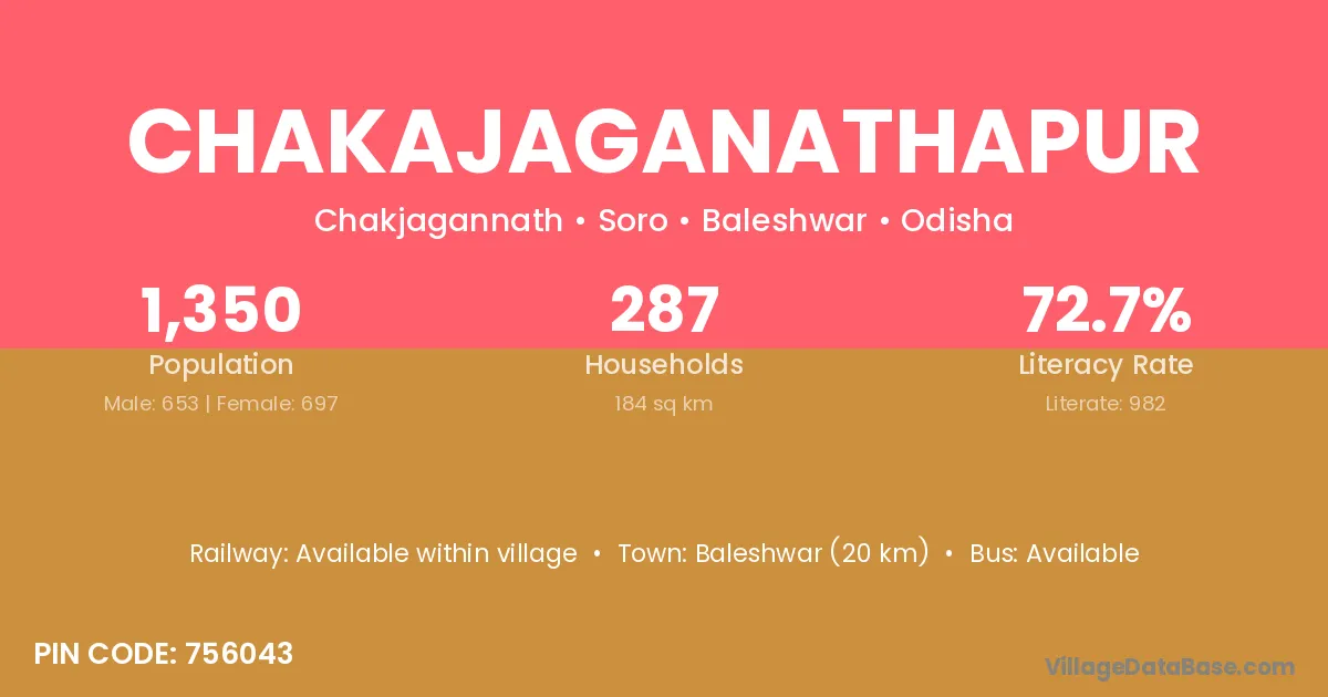 Baleshwar (20 km) is the nearest town to Chakajaganathapur village for major economic activities and is located approximately 20 km away.