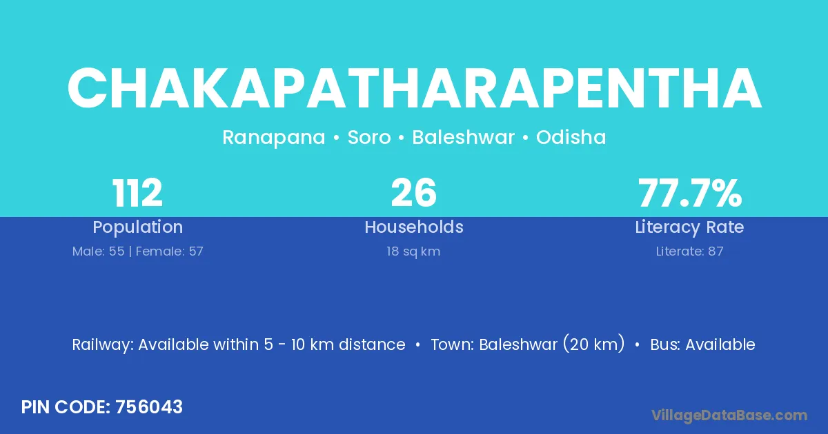 Baleshwar (20 km) is the nearest town to Chakapatharapentha village for major economic activities and is located approximately 20 km away.
