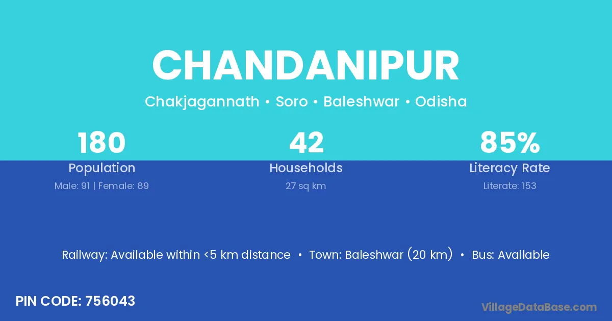 Baleshwar (20 km) is the nearest town to Chandanipur village for major economic activities and is located approximately 20 km away.