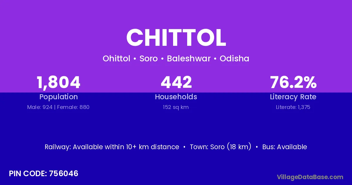 Soro (18 km) is the nearest town to Chittol village for major economic activities and is located approximately 18 km away.