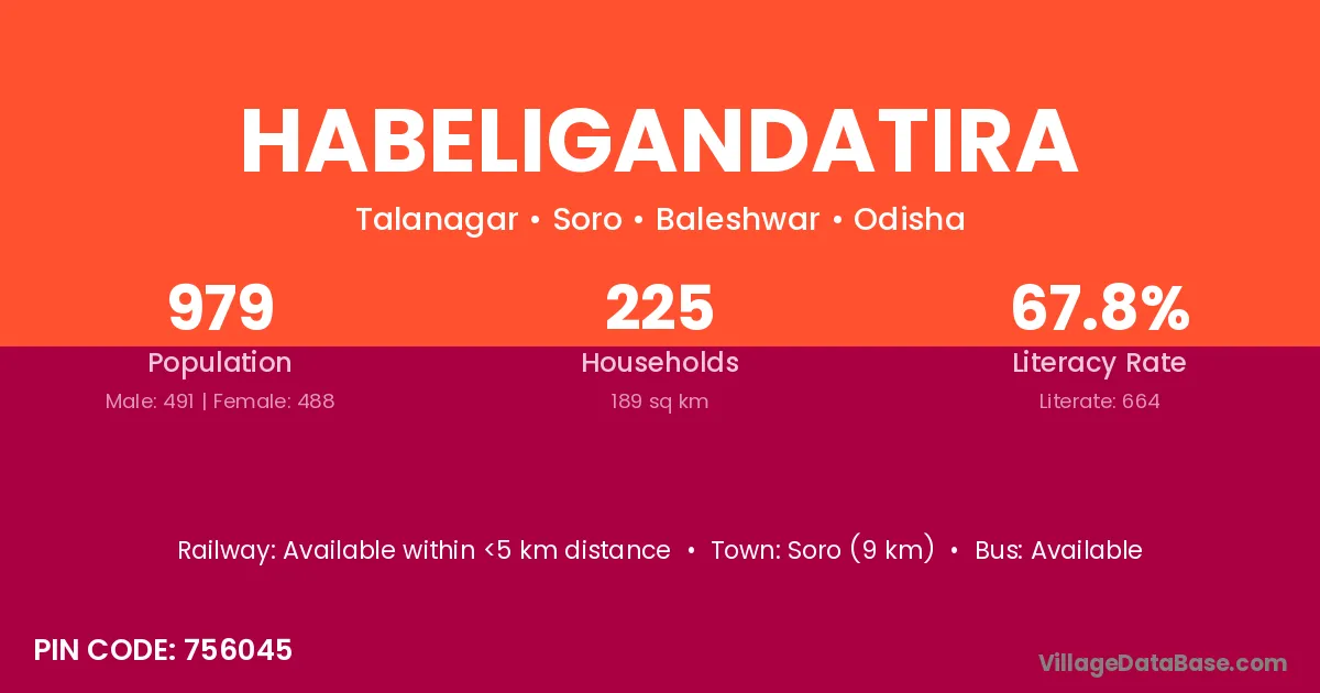 Habeligandatira village has a total population of 979 people, of which 491 are males and 488 are females.