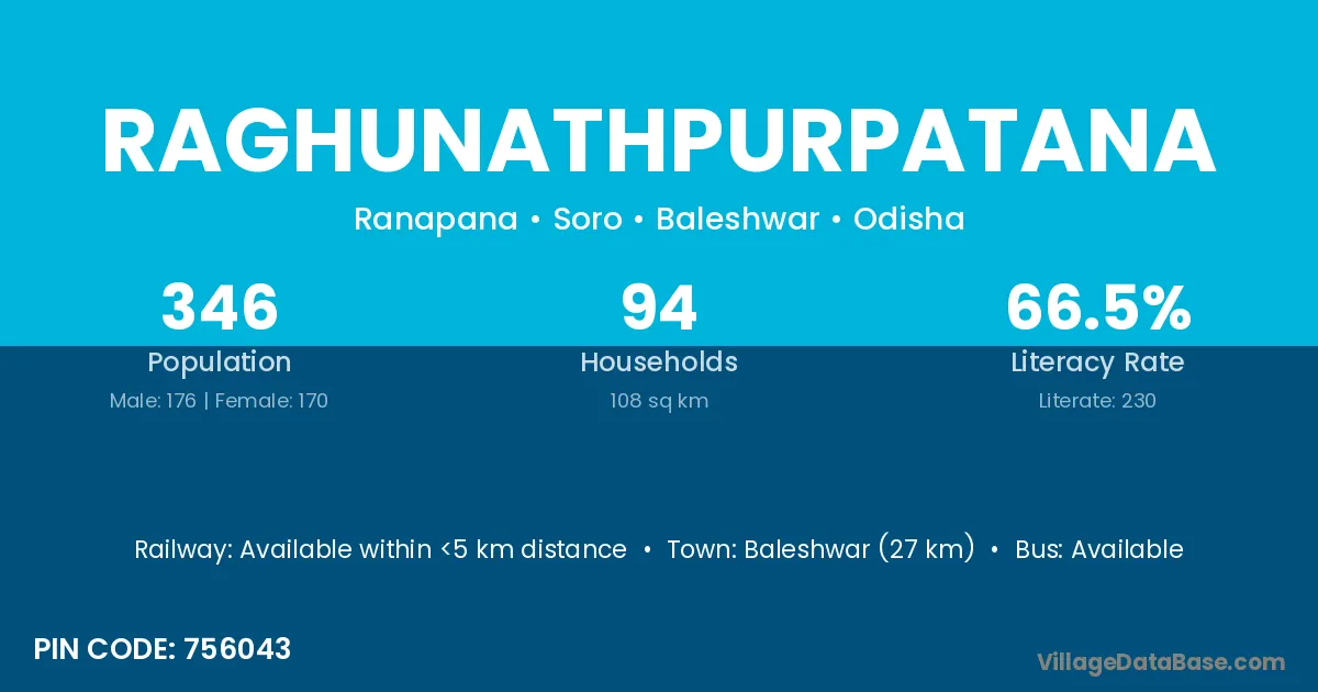 Baleshwar (27 km) is the nearest town to Raghunathpurpatana village for major economic activities and is located approximately 27 km away.