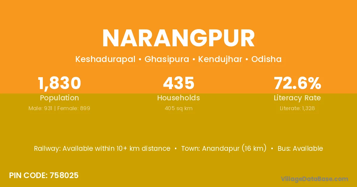 According to Census 2011 information, the village code of Narangpur village is 768045.