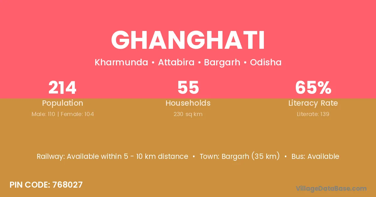 Bargarh (35 km) is the nearest town to Ghanghati village for major economic activities and is located approximately 35 km away.