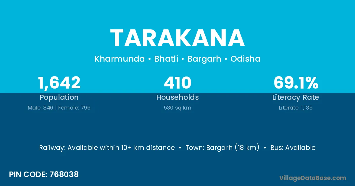 Bargarh (18 km) is the nearest town to Tarakana village for major economic activities and is located approximately 18 km away.