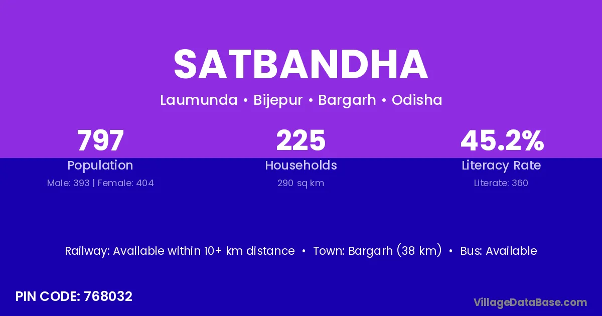 Bargarh (38 km) is the nearest town to Satbandha village for major economic activities and is located approximately 38 km away.