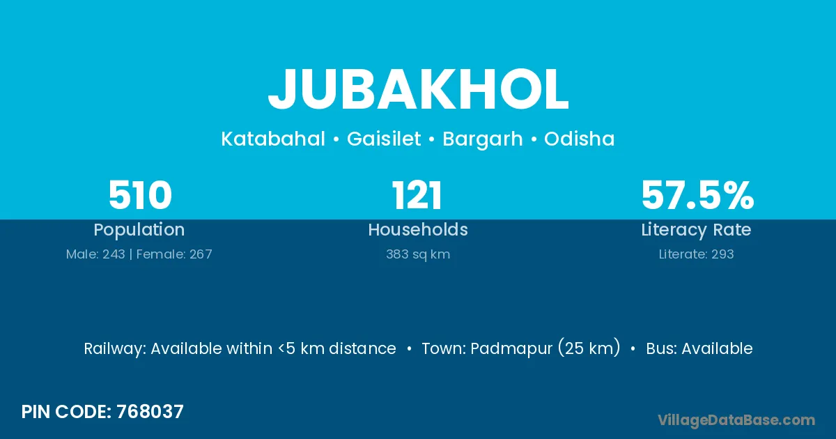 According to Census 2011 information, the village code of Jubakhol village is 768037.