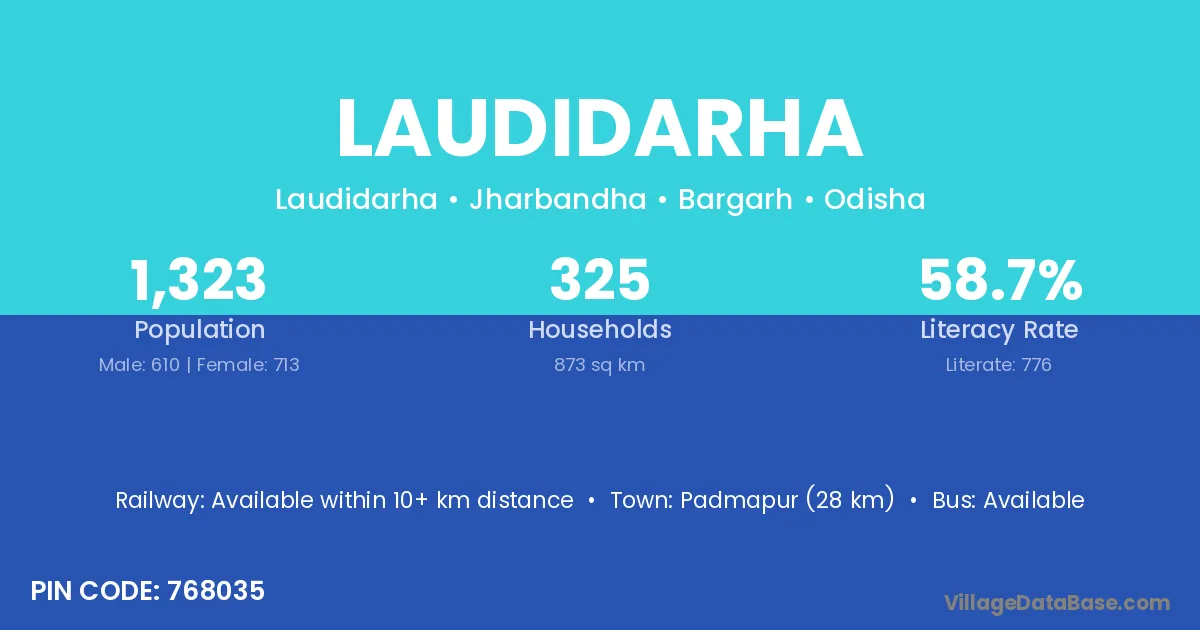 Padmapur (28 km) is the nearest town to Laudidarha village for major economic activities and is located approximately 28 km away.
