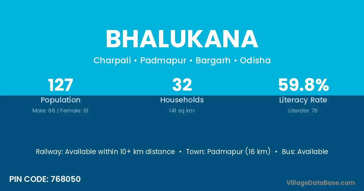 Padmapur (16 km) is the nearest town to Bhalukana village for major economic activities and is located approximately 16 km away.