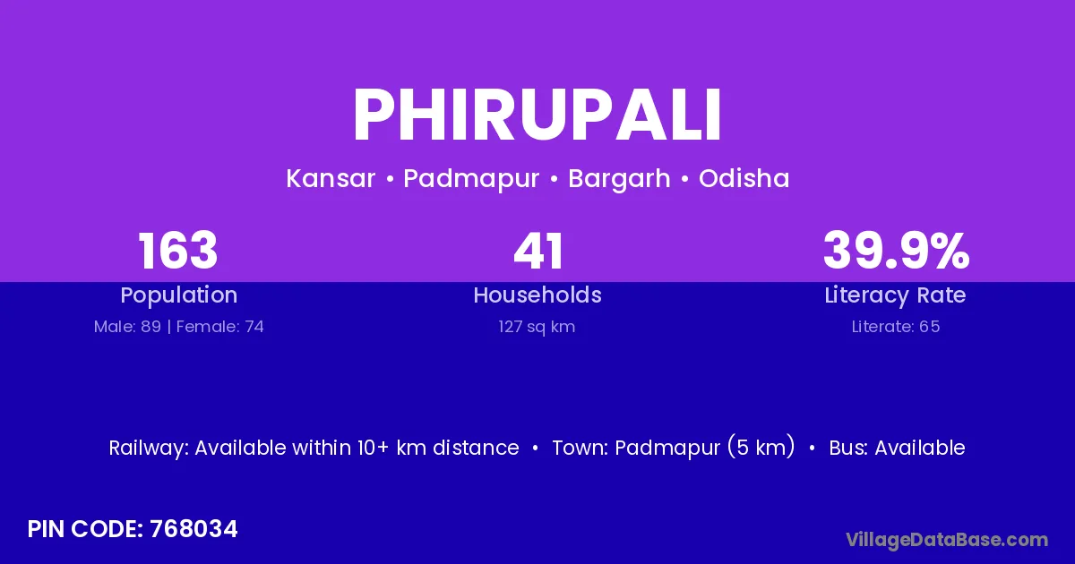 Padmapur (5 km) is the nearest town to Phirupali village for major economic activities and is located approximately 5 km away.