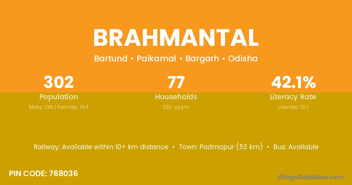 According to Census 2011 information, the village code of Brahmantal village is 768036.