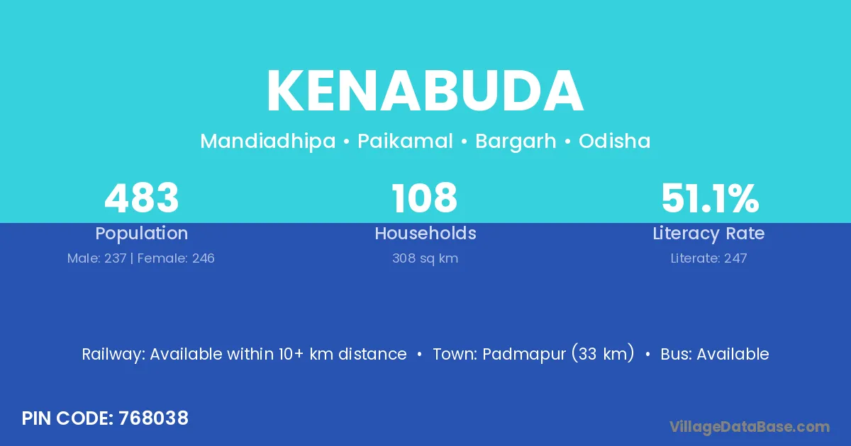 Padmapur (33 km) is the nearest town to Kenabuda village for major economic activities and is located approximately 33 km away.