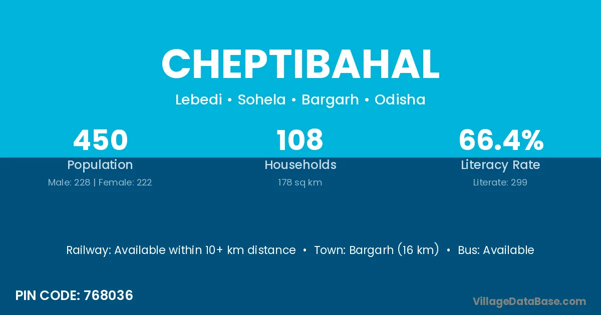 Bargarh (16 km) is the nearest town to Cheptibahal village for major economic activities and is located approximately 16 km away.