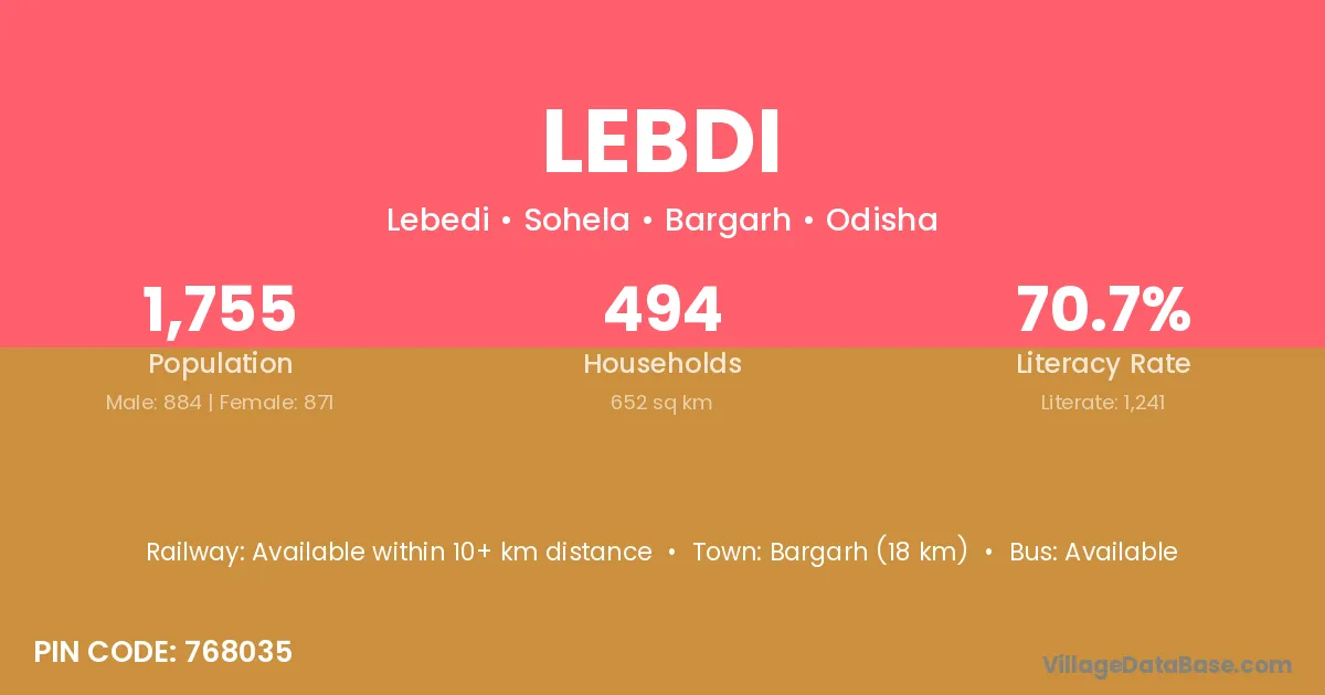 Bargarh (18 km) is the nearest town to Lebdi village for major economic activities and is located approximately 18 km away.