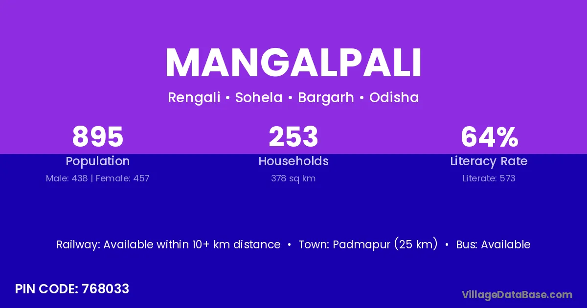 According to Census 2011 information, the village code of Mangalpali village is 768033.