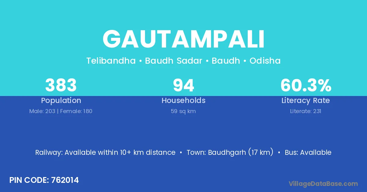 Baudhgarh (17 km) is the nearest town to Gautampali village for major economic activities and is located approximately 17 km away.