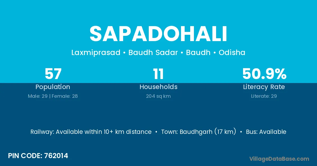 Baudhgarh (17 km) is the nearest town to Sapadohali village for major economic activities and is located approximately 17 km away.