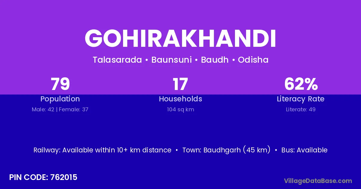 Baudhgarh (45 km) is the nearest town to Gohirakhandi village for major economic activities and is located approximately 45 km away.