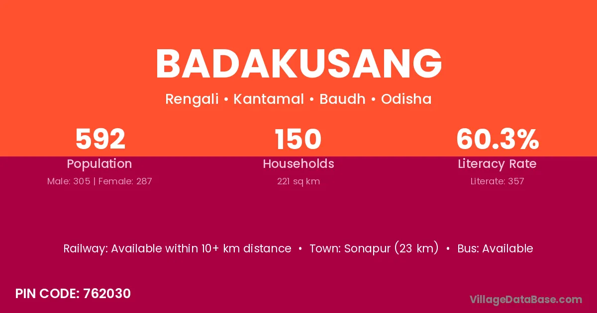 Badakusang village has a total population of 592 people, of which 305 are males and 287 are females.