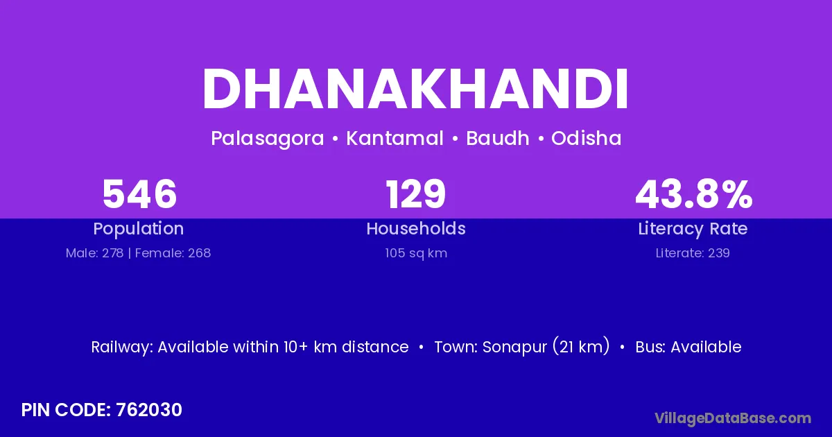 According to Census 2011 information, the village code of Dhanakhandi village is 762030.