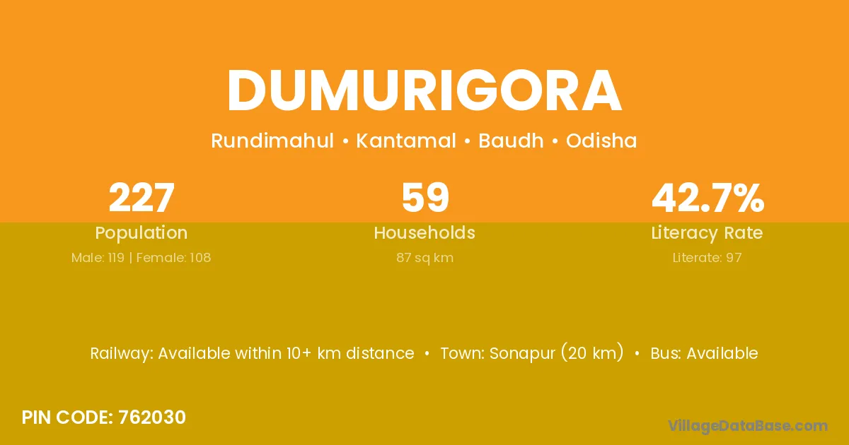 Dumurigora village is located in the Kantamal Tehsil of the Baudh district in Odisha .