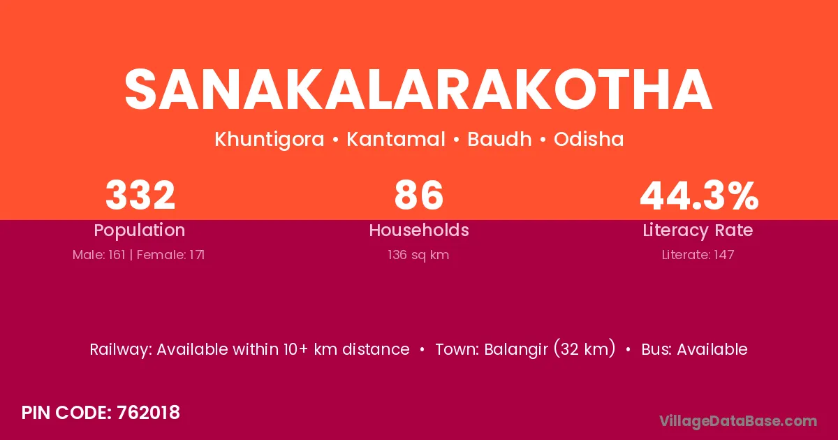 Balangir (32 km) is the nearest town to Sanakalarakotha village for major economic activities and is located approximately 32 km away.