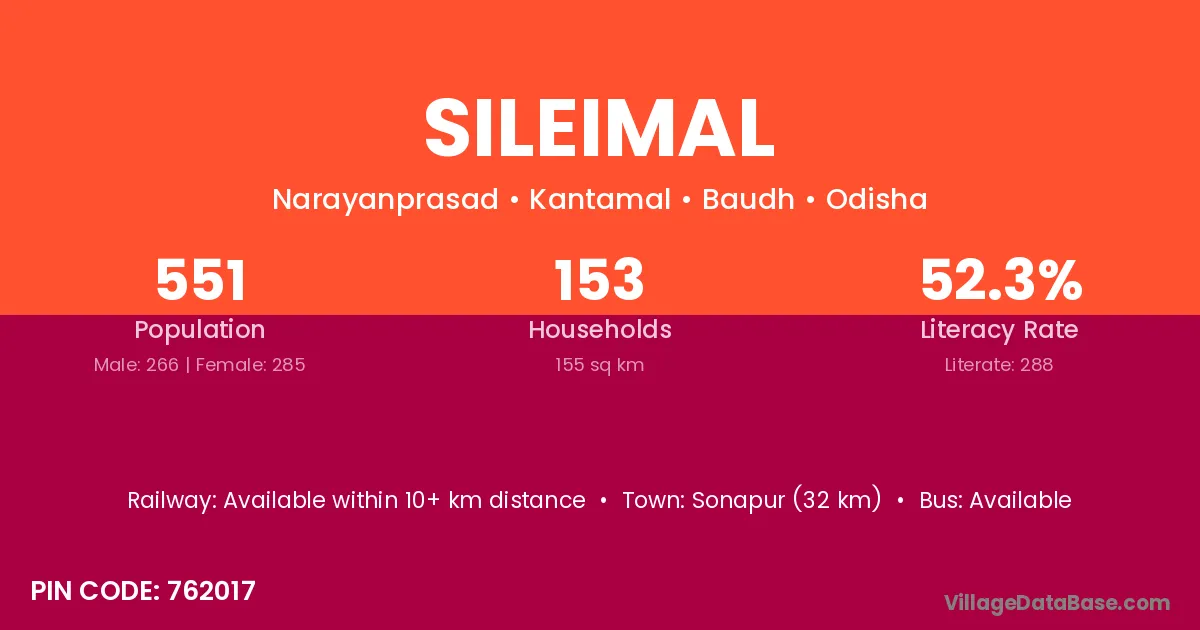 Sileimal village has a total population of 551 people, of which 266 are males and 285 are females.