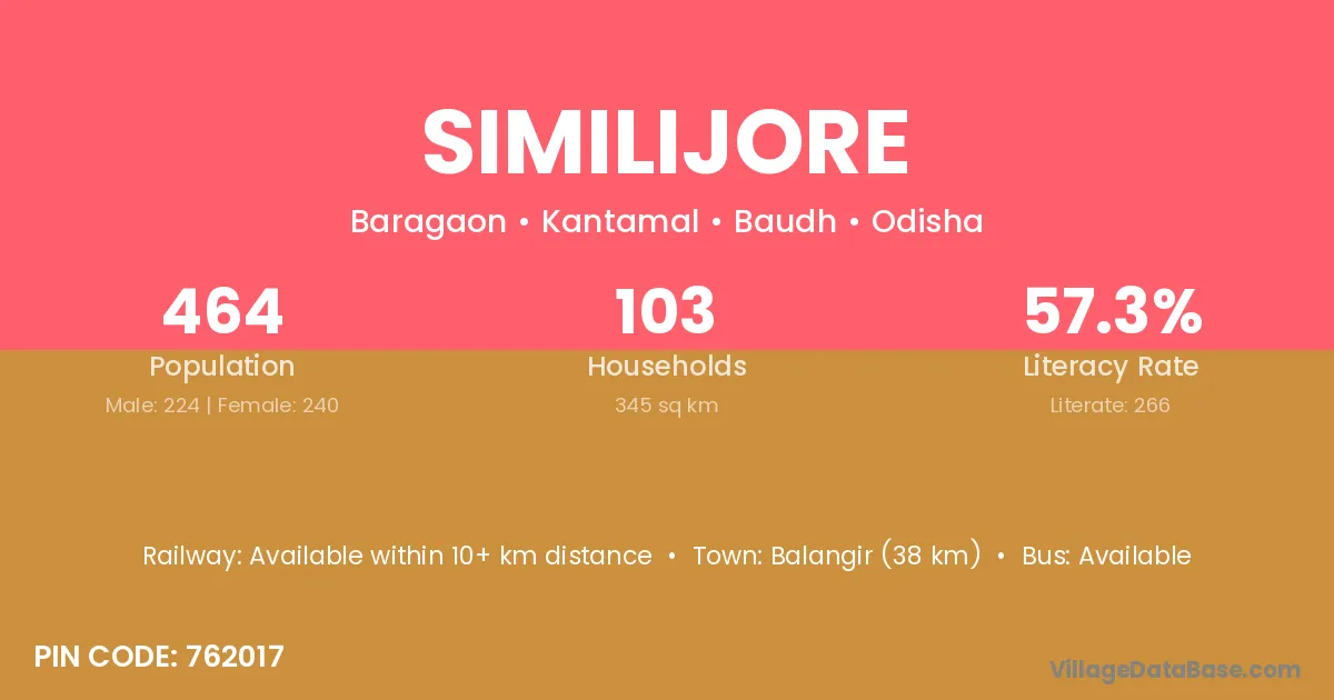 Balangir (38 km) is the nearest town to Similijore village for major economic activities and is located approximately 38 km away.