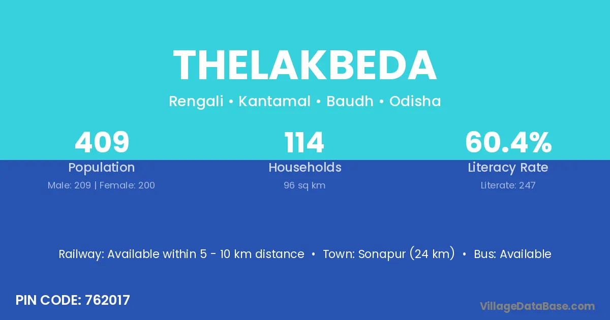 According to Census 2011 information, the village code of Thelakbeda village is 762017.