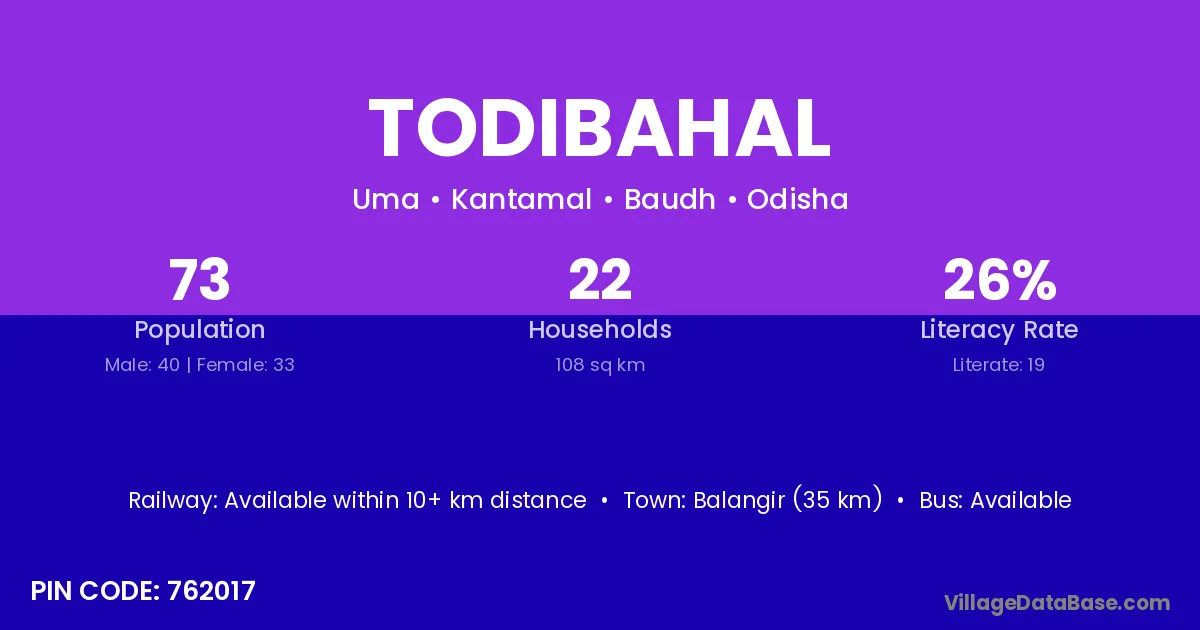 Balangir (35 km) is the nearest town to Todibahal village for major economic activities and is located approximately 35 km away.