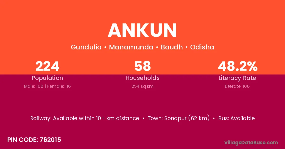 Ankun village is located in the Manamunda Tehsil of the Baudh district in Odisha .
