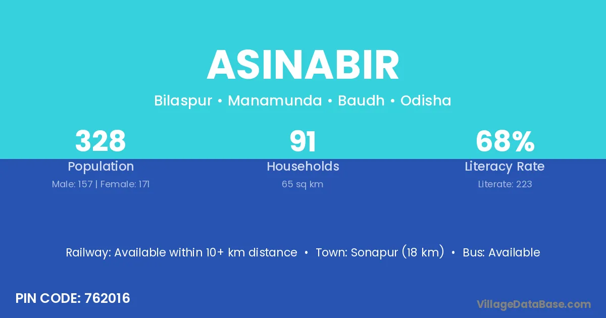 Sonapur (18 km) is the nearest town to Asinabir village for major economic activities and is located approximately 18 km away.