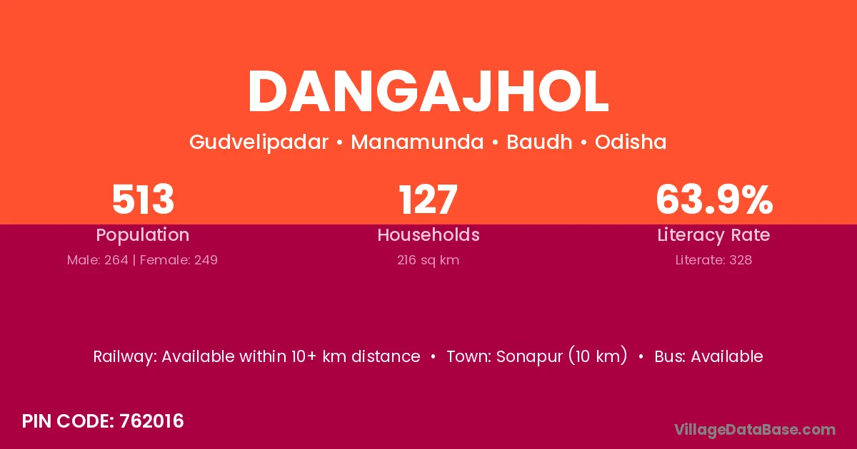 Dangajhol village has a total population of 513 people, of which 264 are males and 249 are females.