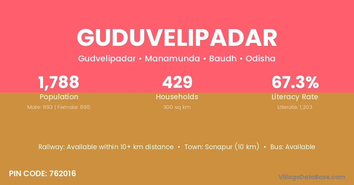 Guduvelipadar village has a total population of 1,788 people, of which 893 are males and 895 are females.
