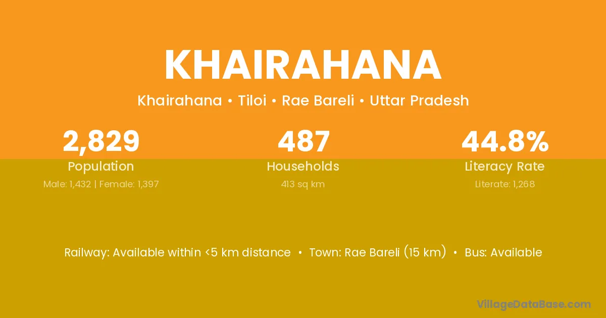 Sonapur (13 km) is the nearest town to Khairahana village for major economic activities and is located approximately 13 km away.