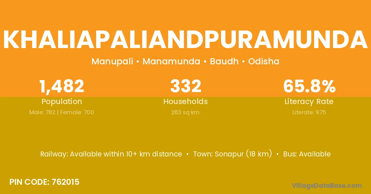 Khaliapaliandpuramunda village has a total population of 1,482 people, of which 782 are males and 700 are females.