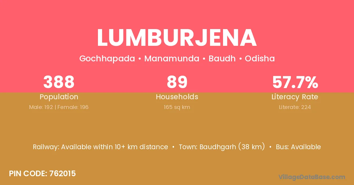Lumburjena village has a total population of 388 people, of which 192 are males and 196 are females.