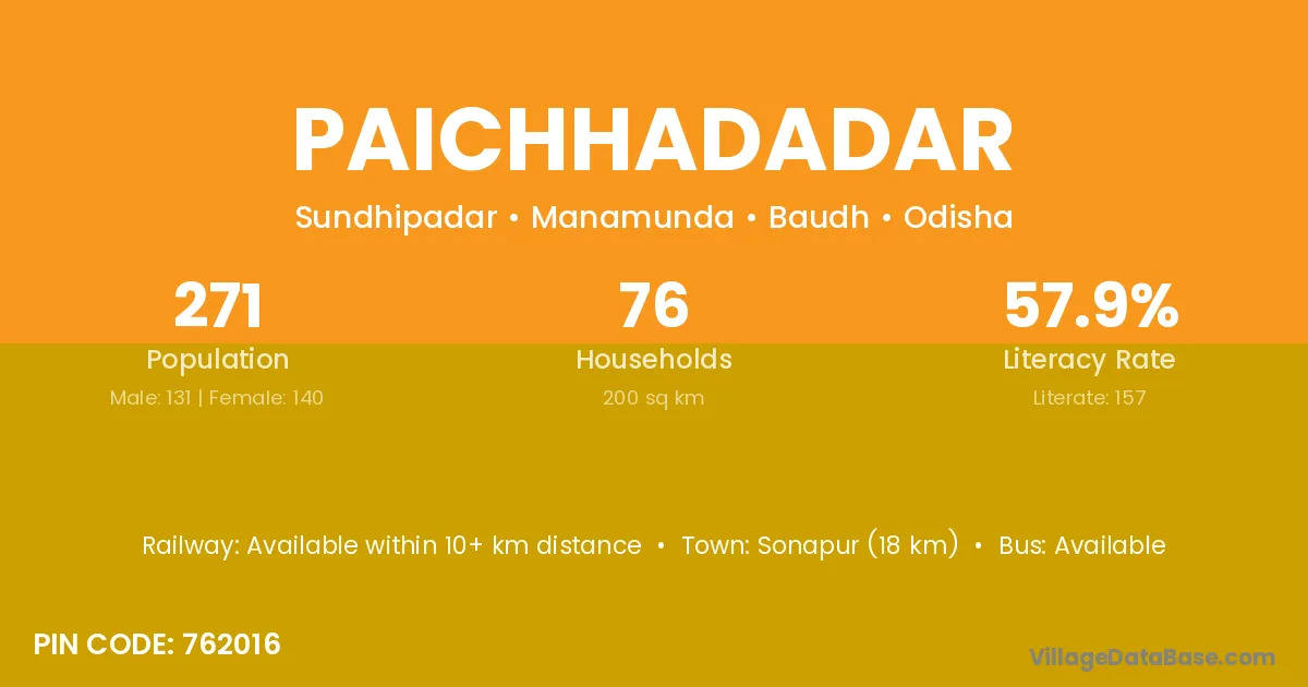 Sonapur (18 km) is the nearest town to Paichhadadar village for major economic activities and is located approximately 18 km away.
