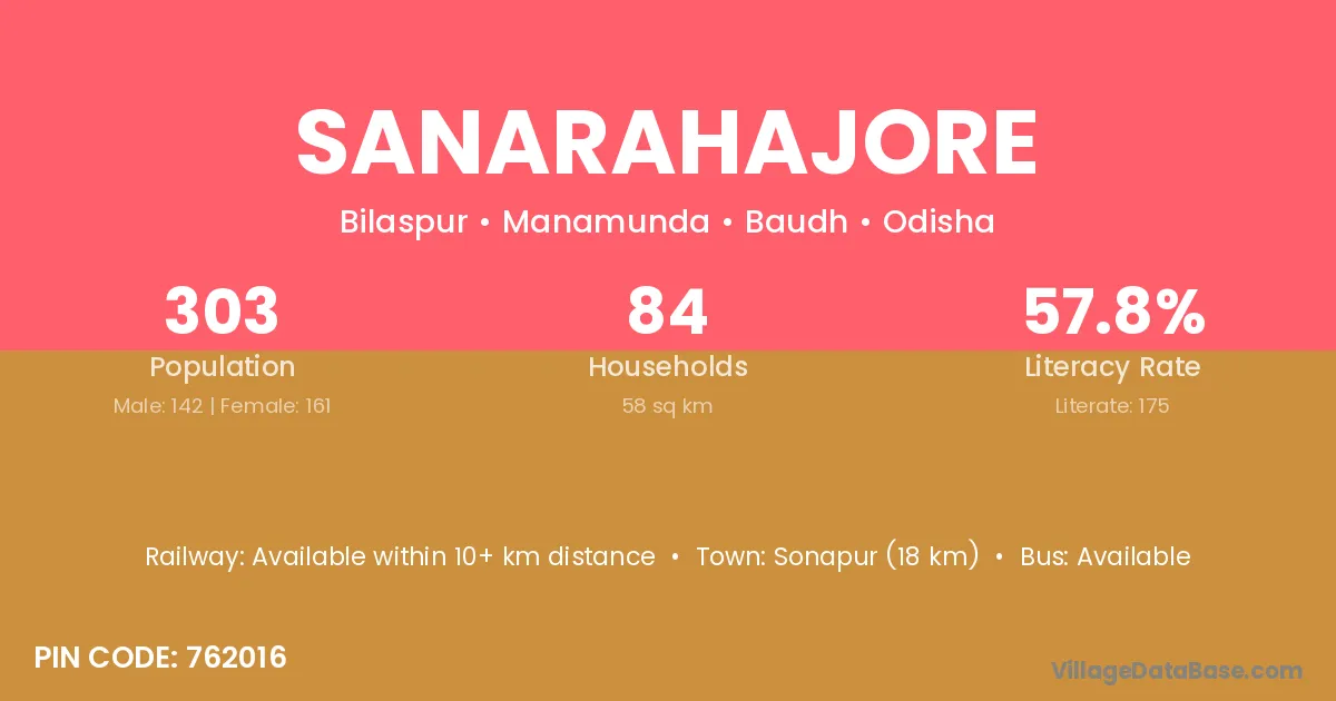 Sanarahajore village has a total population of 303 people, of which 142 are males and 161 are females.