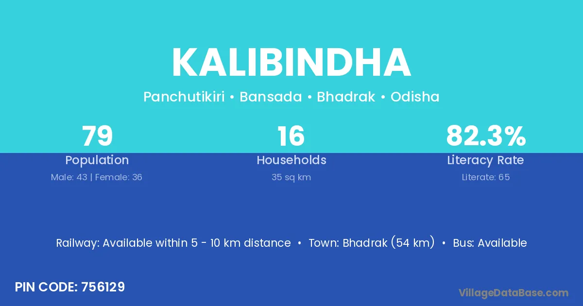 Bhadrak (54 km) is the nearest town to Kalibindha village for major economic activities and is located approximately 54 km away.