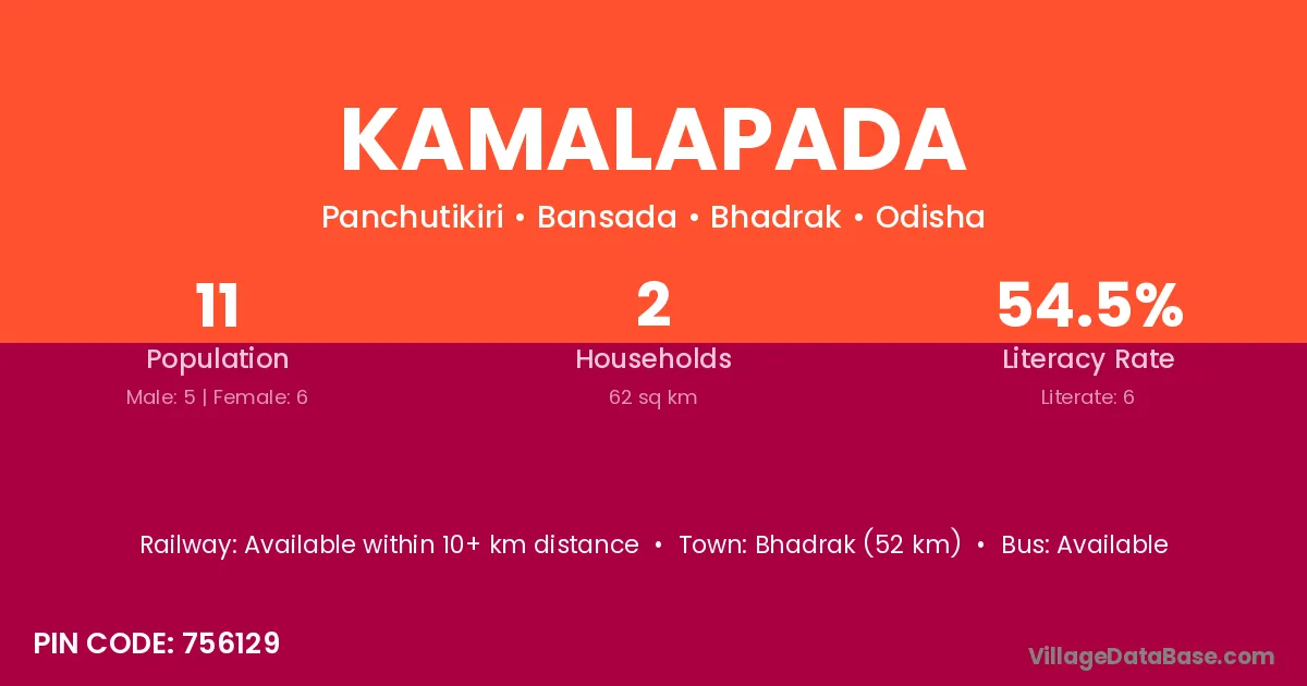 Kamalapada village has a total population of 11 people, of which 5 are males and 6 are females.