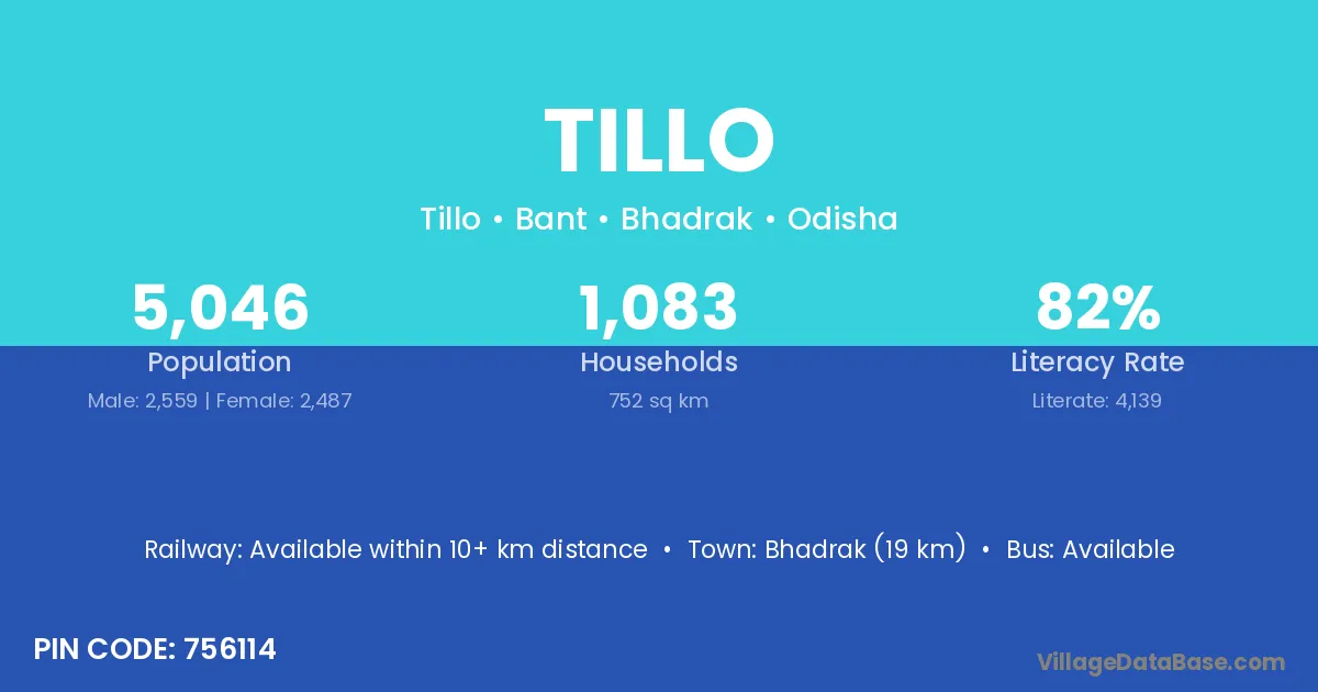 Bhadrak (19 km) is the nearest town to Tillo village for major economic activities and is located approximately 19 km away.