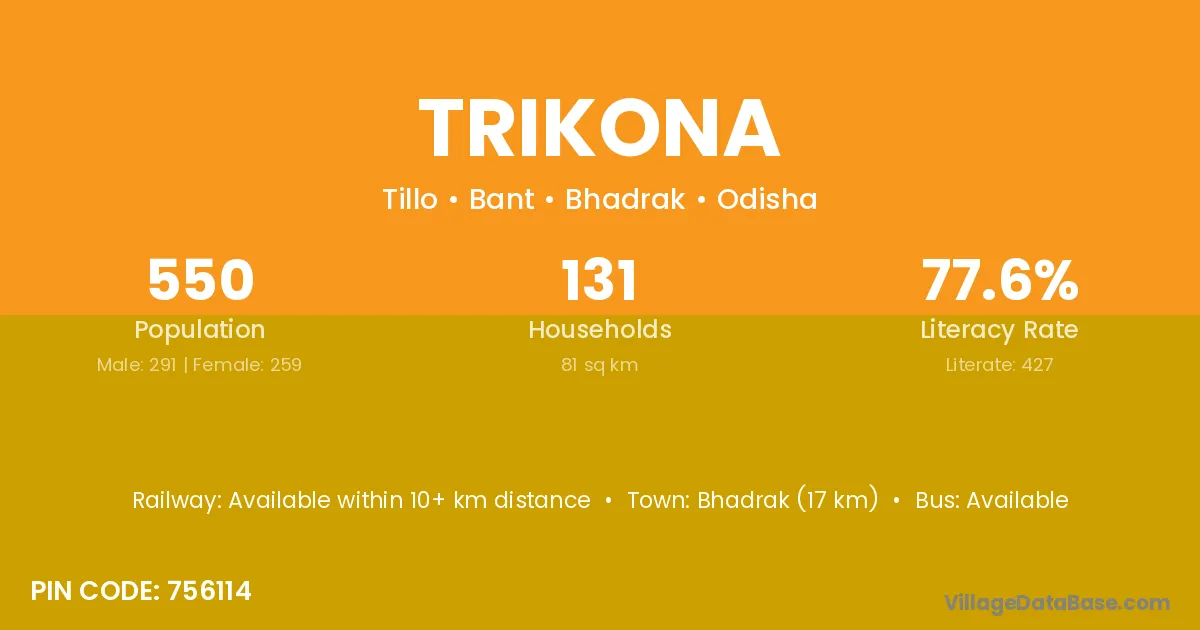 Trikona village has a total population of 550 people, of which 291 are males and 259 are females.
