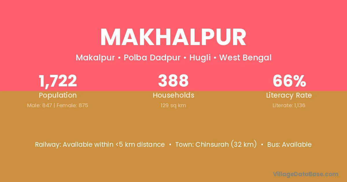 Basudebpur (6 km) is the nearest town to Makhalpur village for major economic activities and is located approximately 6 km away.