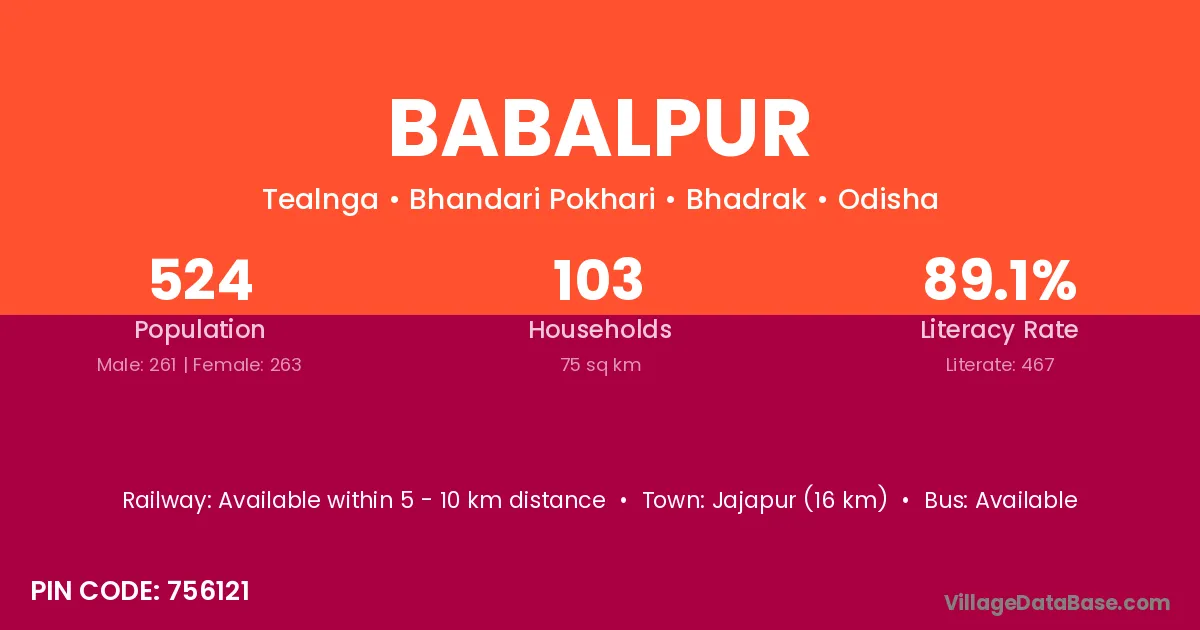 Jajapur (16 km) is the nearest town to Babalpur village for major economic activities and is located approximately 16 km away.