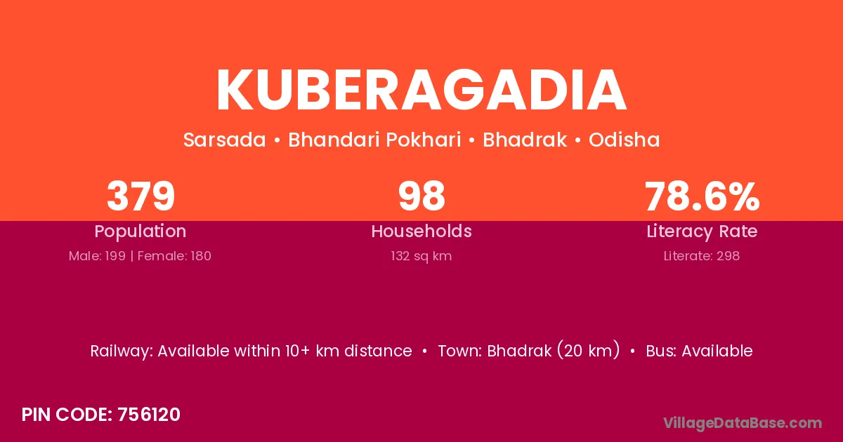 Bhadrak (20 km) is the nearest town to Kuberagadia village for major economic activities and is located approximately 20 km away.