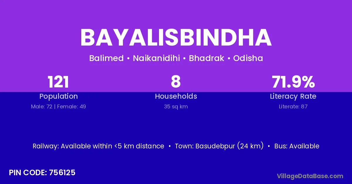 Bayalisbindha village is located in the Naikanidihi Tehsil of the Bhadrak district in Odisha .